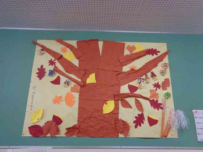 1,6年生の玄関に、環境整美委員会で作成している 季節のかざりがあります。知っていましたか? 今日から秋のかざりに変わりました。 どんな生き物や食べ物が隠れているか、探してみてください。