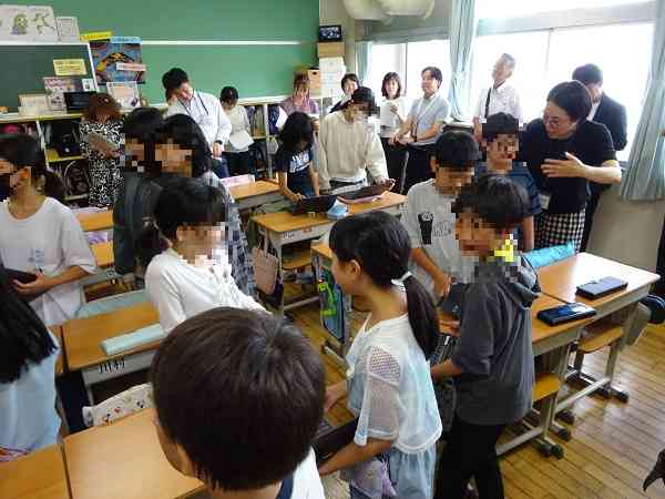 今日は江東区小学校教育研究会の外国語部会の授業が、5年2組で行われました。 「Can you do this?」「Yes,Ican./No,I can't」のセンテンスを使って、自分ができることを相手にもできるかどうか尋ねたり、尋ねられたことに答えたりしました。 他の学校の先生も多くいらしている中、5年2組のこどもたちはすすんでクラスの友達と英語で交流していて、とても立派でした。