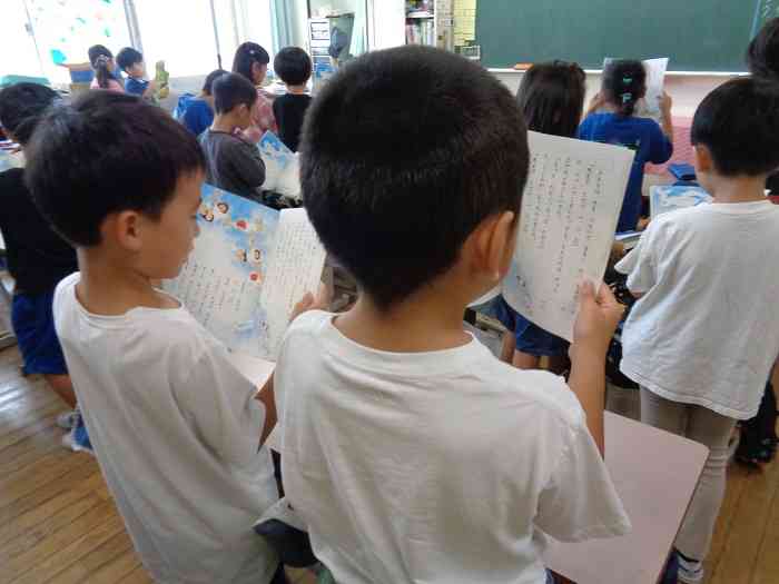 1年生は国語の下巻の学習が始まりました。下巻は「くじらぐも」という物語文の学習から始まりました。今までに比べて長い文章なので、音読をたくさんしています。ペアで丸読みをしながら、スラスラ読めるように練習しています。