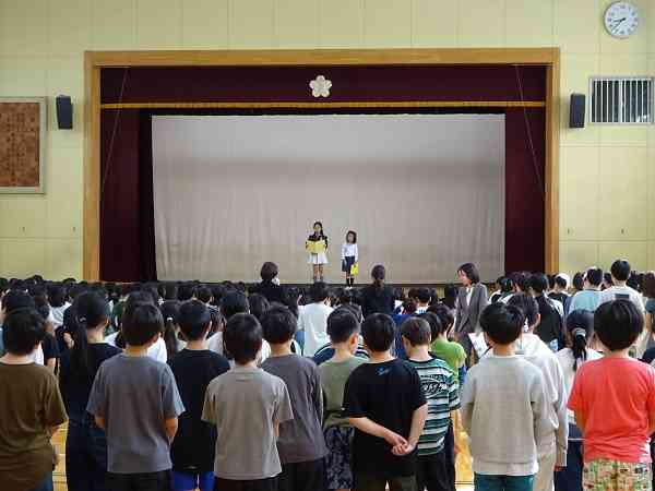 本日(10/14)から、後期の学校生活が始まりました。 早速、体育館で後期の始業式が行われました。 校長先生からは、「目には見えないが大切なもの」、特に「時間」の大切さのお話がありました。今年度、残りの6ヶ月、この限られた時間を有効に使ってほしいですね。 児童代表の言葉は、1年生と4年生からでした。 それぞれ、長縄をたくさん跳ぶことや、挙手して発言することなどを頑張りたいと、堂々と発表していました。 それぞれの目標を胸に、充実した学校生活を送ってほしいと思います。【添付ファイル】