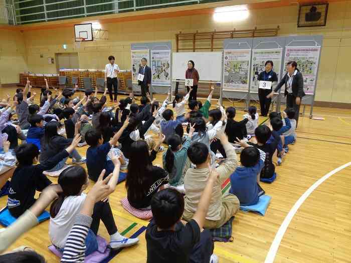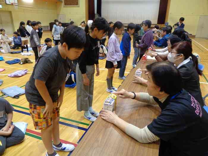 総合で「福祉」について学習しています。この日は、町の中でみんなが生活しやすくなる工夫を具体的に利用している人のお話を聞きました。また、身の回りにある商品にも生活しやすくなる工夫が、牛乳パックの注ぎ口の上の部分や、シャンプーやリンスなどにあることを教わりました。 私たちは来月「デフリンピック」での観戦も決まっています。今日教えてもらった「サインエール」を選手へ送り応援してきます。